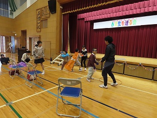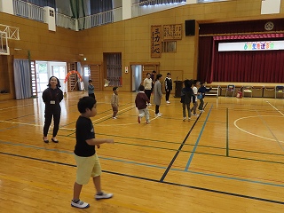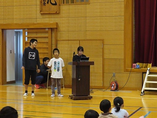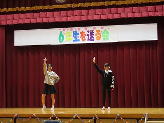 司会進行は、新児童会ががんばります! 最初に「はるかぜにさそわれて」全員で踊りました!