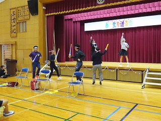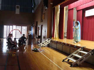 3.4年生からは、楽しい歌のダンスです。卒業生も舞台の上で踊りました!
