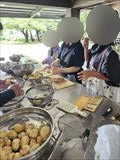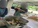 7月に植えたお芋を収穫して調理に入る予定でしたが、夏の猛暑と大雨によりお芋の育ちが悪く、また当日はあいにくの天気により収穫を断念<(_ _)>