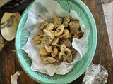 芋料理のメニューは、お芋天ぷら、ポテトチップス、焼き芋、カンダバー汁の4種類(^^)