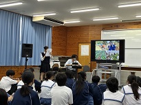 2学年 総合的な学習の時間地球環境・自然(外来生物と在来生物)について、考えました。 講師:エコツアーふくみみ・大堀健司 様、大堀則子 様 お忙しい中、ありがとうございました。