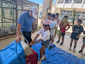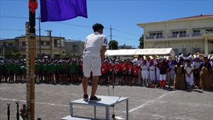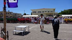 夏休が終わってから2学期が始まってからすぐに学年学級で運動会練習が本格的に始まり、高学年(56年)の児童の皆さんは、放課後の時間に字石垣字新川の地域の青年会の方から豊年祭で行われる棒術獅子舞の指導をしていただきました。児童の皆さんも放課後の時間に一生懸命教えていただいたことをしっかり表現できるように何度も繰り返し練習をがんばっていました。運動会本番ではたくさんの保護者の皆さんに声援をいただきながら子どもたち練習の成果を十二分に発揮させることができていました。