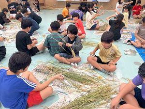 5年生が4年時に田植えした稲がしっかり実り、年度をまたぎ、令和7年6月26日に稲刈り作業と脱穀作業を行いました。収穫できた、稲は豊年祭に無事に収穫できた感謝の気持ちを込めて宮鳥御嶽に奉納いたします。