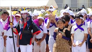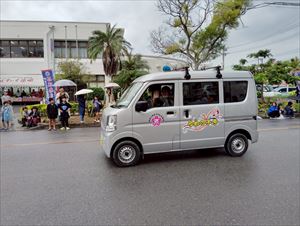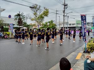 本校高学年(5/6年)児童が鼓笛隊と横断幕をもって石垣島祭りの市民パレードを盛り上げてきました。6年生児童の鼓笛隊を中心に11月2日までの登校している時間を使って校歌などの曲を隊形移動をしながら演奏して石垣島祭りを盛り上げてきました。たくさんの地域の方々の声援のおかげで