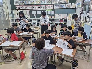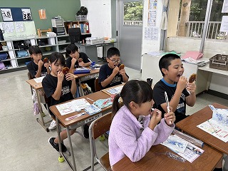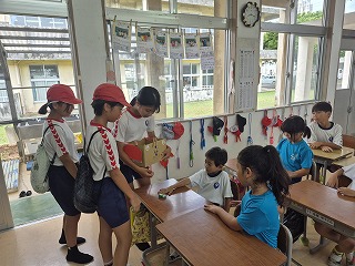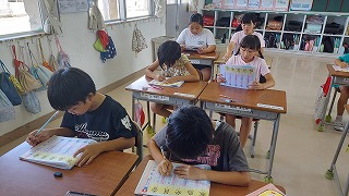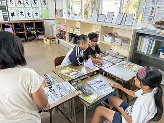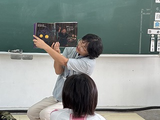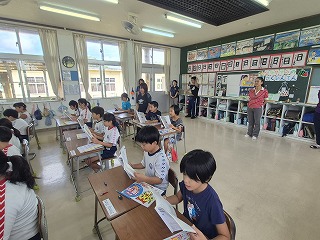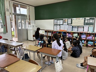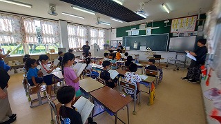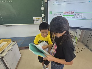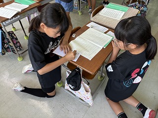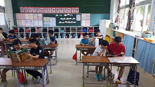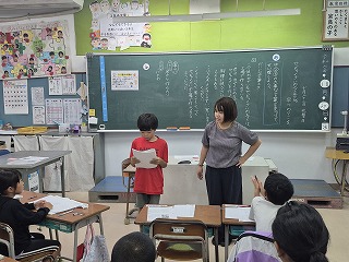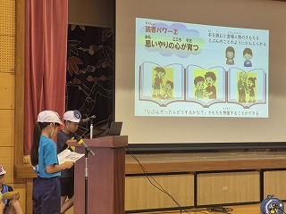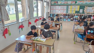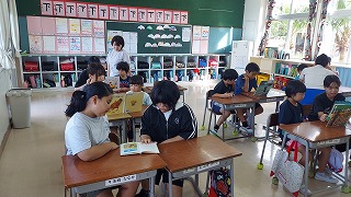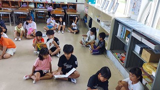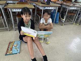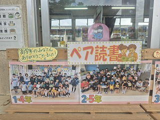 朝読書の時間に、読書旬間の取組として『ペア読書』を行いました。ペア読書とは、低学年と高学年がペア(6年と3年・5年と2年・4年と1年)になり、高学年が低学年に読み聞かせを行うものです。高学年児童がそれぞれ選んだ本を読み聞かせしてあげる姿は、見ていてほんわかしました(^o^)(^o^)学年を超えて関わり合えるってステキだと思います。本を選択し、読み聞かせをしてくれた4年生・5年生・6年生の皆さん、ありがとう(^_^)