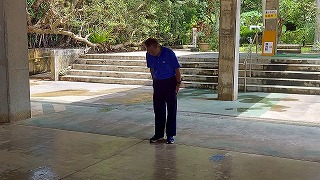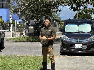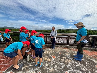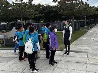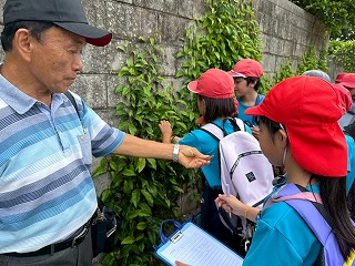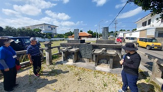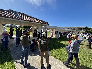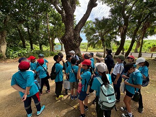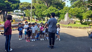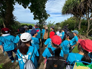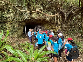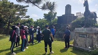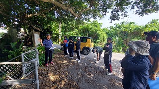 来る2日(金)の春の遠足では、2グループに分かれて宮良探検をしますが、まずその前に職員も宮良地域を学ぼう!ということで、玉津博克氏を講師に迎え、宮良地域について学んできました。「インナーラ・アンナーラ」「赤馬の碑」「アダドゥーナ」などを見学し、その場所の説明を聞き学びを深めた職員でした。