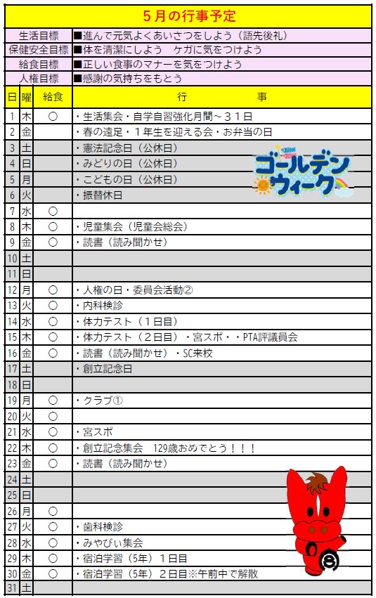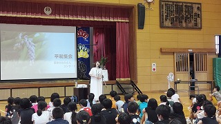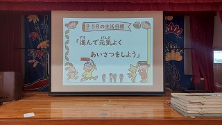 今日は生活集会でした。集会に集合して静かに並んで座る宮小っ子のステキさに朝から気持ちが良かったです(^o^)5月の生活目標は『進んで元気よくあいさつをしよう』、保健目標は『体をせいけつにしよう』です。担当の先生から先月の反省や宮小っ子の良かったところ、これから気をつけてほしいことなどの発表がありました。
