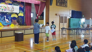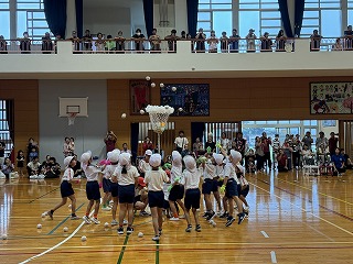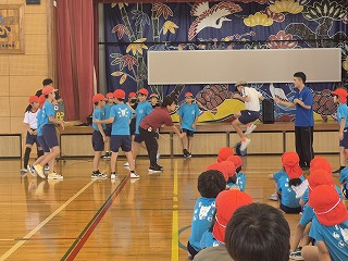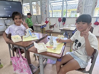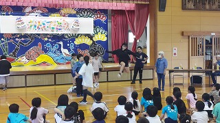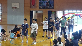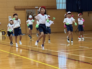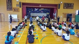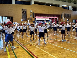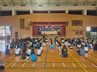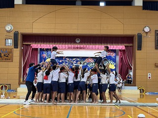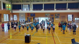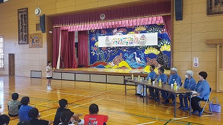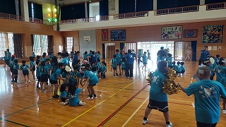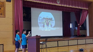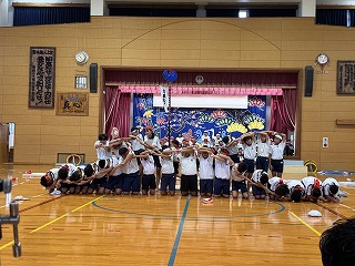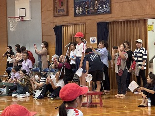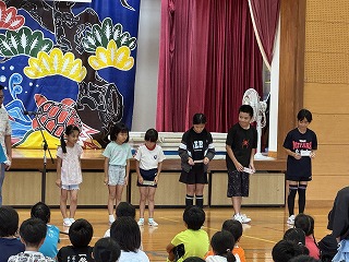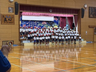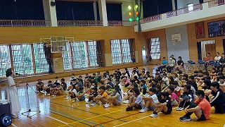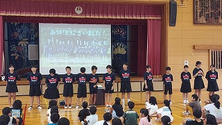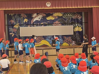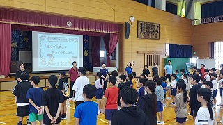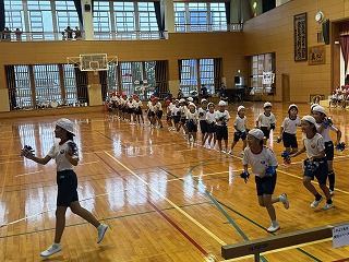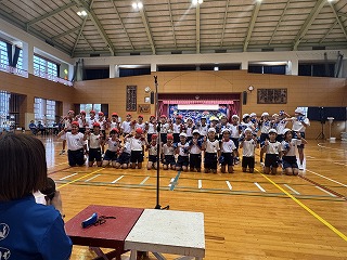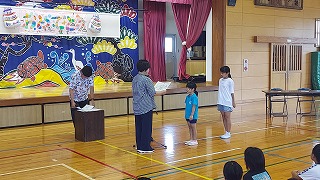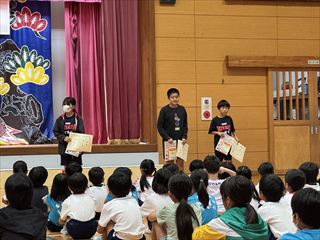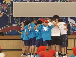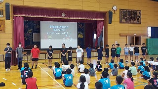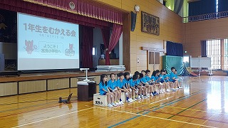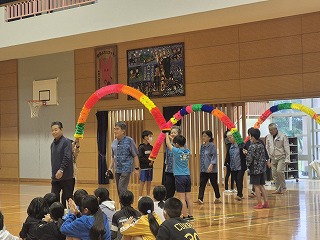 遠足前の時間に『1年生を迎える会』を行いました。1年生と高学年が一緒に入場し会が始まり、各学年の出し物やプレゼントで盛り上がりました。どの学年も、1年生を楽しませたり喜ばせたりしました。他学年も笑顔でしたが、1年生の笑顔が最高に良かったです(^o^)かわいい弟と妹のために、一生懸命ステキな会を創ってくれた2~6年生のお兄ちゃんお姉ちゃんに感謝です(^o^)