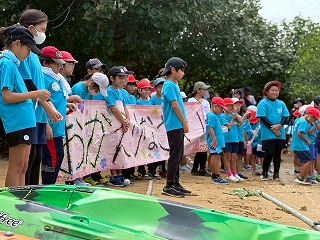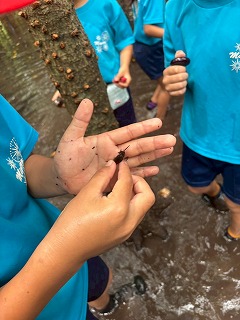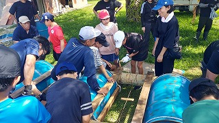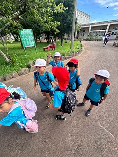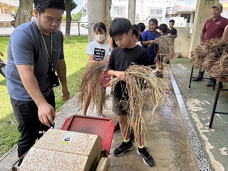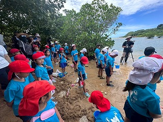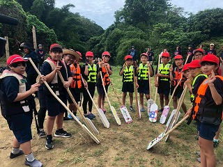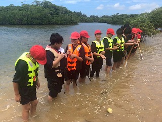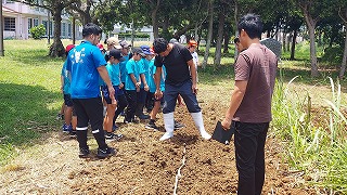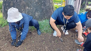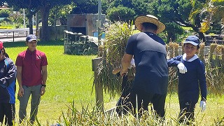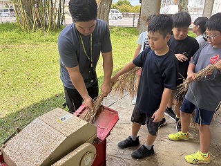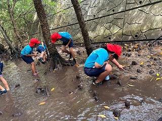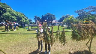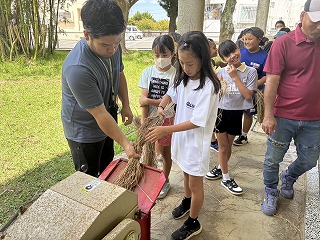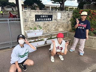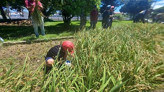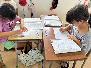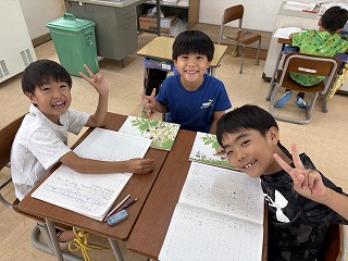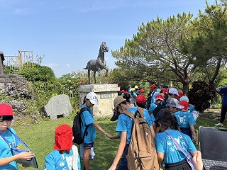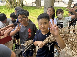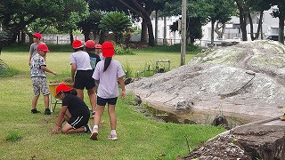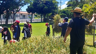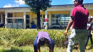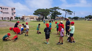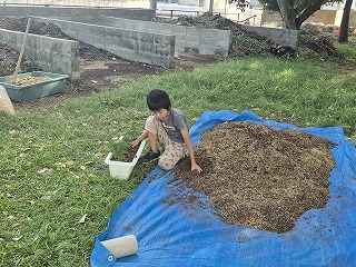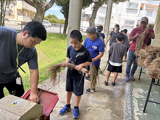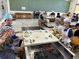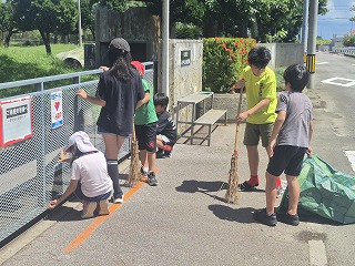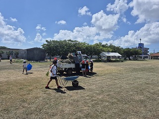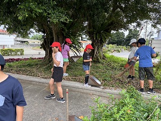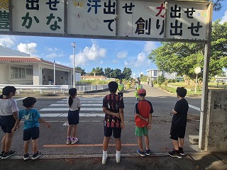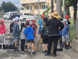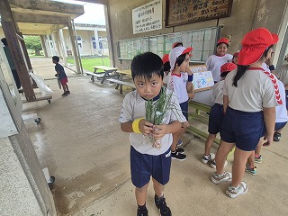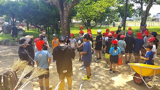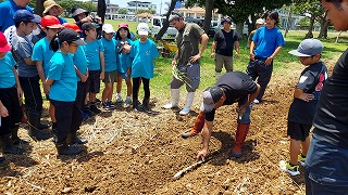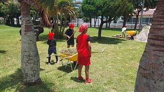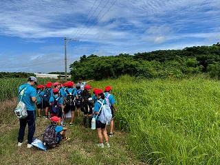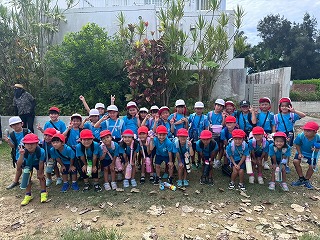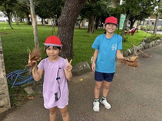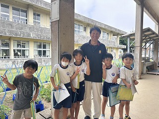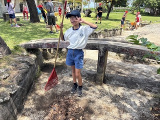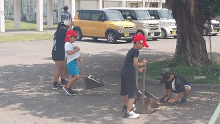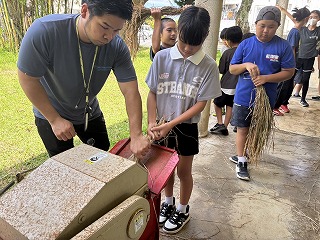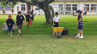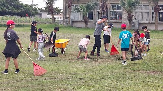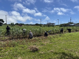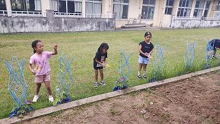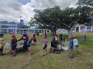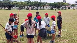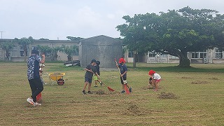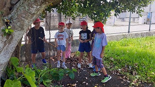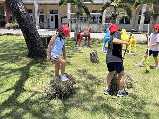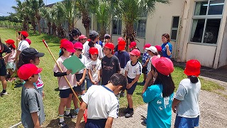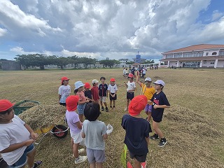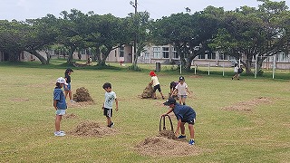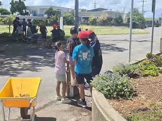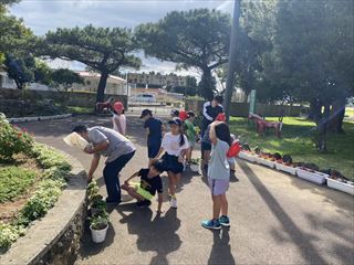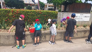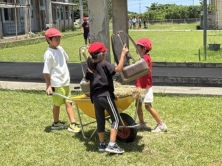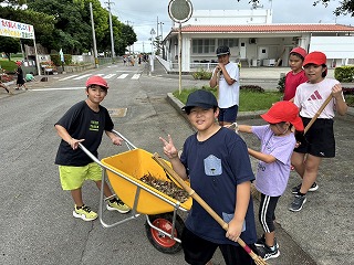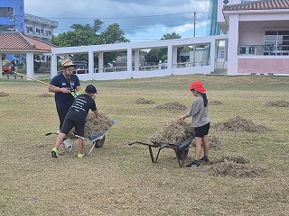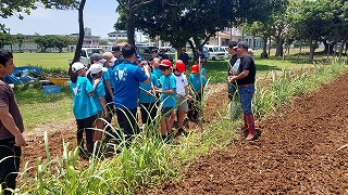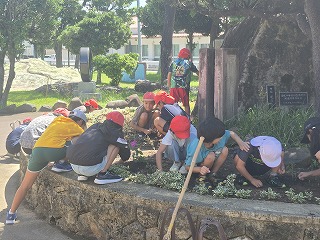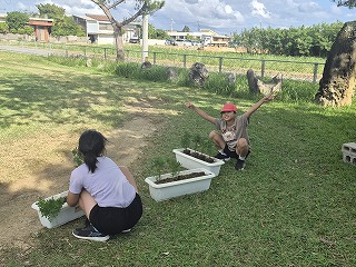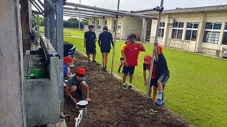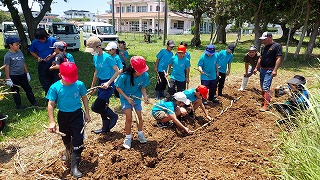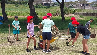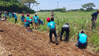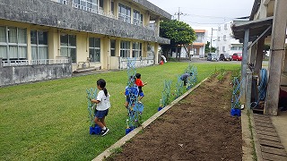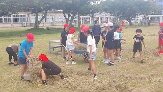 2月の『サトウキビの変身』に向けて、5年生がキビ植えを行いました。「おいしくな~れ!おおきくな~れ!」と声をかけながら植えていきました。遠足後の作業でしたが、暑い中元気に頑張ってくれた5年生です。前日から保護者の皆様が準備をして下さり、今日も多くも見守りがありました。いつも子ども達のためにサポートして下さる保護者の皆様には感謝の気持ちでいっぱいです。2月が楽しみです(^o^)