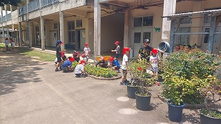 今日は、1年生と4年生が一人一鉢運動を行いました。1年生も小さい丸鉢に一生懸命植えました(*^_^*)4年生はマリーゴールドをプランターに植えました。どの鉢の苗も元気に育つといいなぁ(*^_^*)