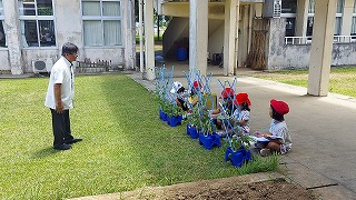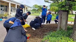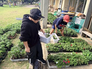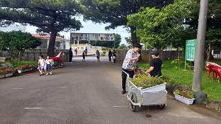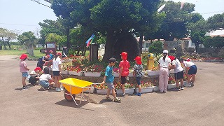宮良小学校花いっぱい計画として、一人一鉢(一プランター)運動をスタートしました。今日は、第1号として6年生がプランターに苗を植えました。インパチェンス・サルビア・マリーゴールド・ベゴニアの4種類を植えて、宮良小学校を花いっぱいにします(*^_^*)全学年が取り組むので、みんなの思いが満開になるのを楽しみにしています。