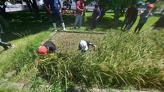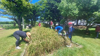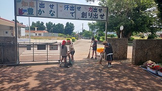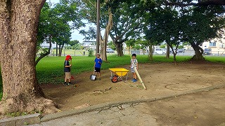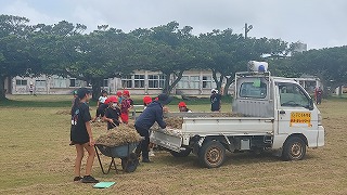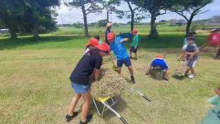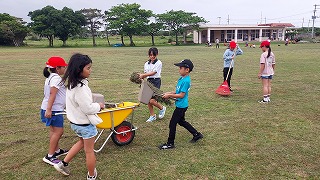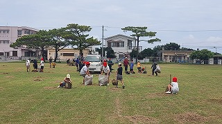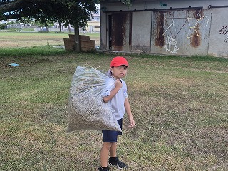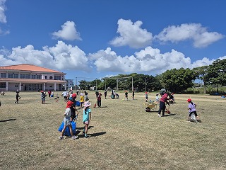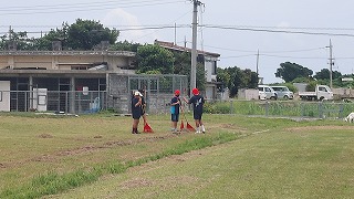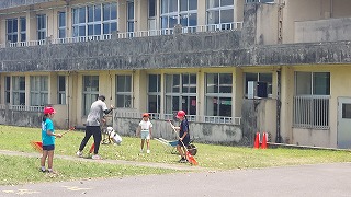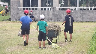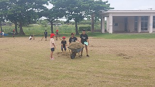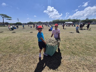 今日のクリーンデーは運動場の草集め!大きな運動場の管理は大変ですが、子ども達のおかげで運動場の管理もできています(^o^)広大な運動場の草刈りは、基本的にはビーバーや手押し草刈り機での作業でめちゃくちゃ大変です(T_T)今回は、別学校の乗用草刈り機を借りて作業を行いクリーンデーに備えました。草を集める熊手も一輪車も不足しているため、宮小っ子の頑張りがなければどうにもなりません(-_-)暑さはこれからが本番なので、草の伸びも大変ですが、定期的にみんなで草刈り・草集めを行い、立派な運動場をキープしていけたらいいな!