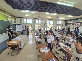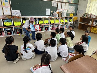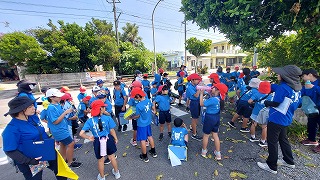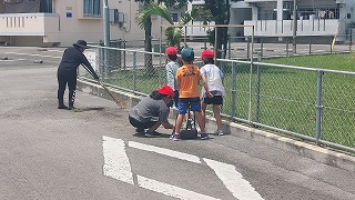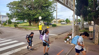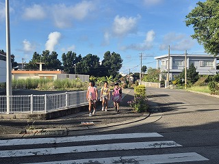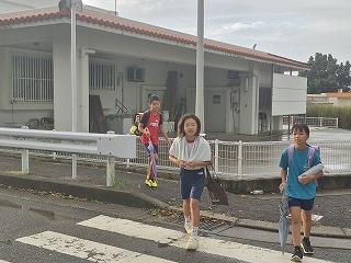 1年生が『交通安全教室』を行いました。教室でDVDで確認した後、実際に道路に出て横断歩道の渡り方を実践しました。渡る前に左右の確認をしっかり行い、手をあげて渡る姿は、とってもかっこよかったです(^_^)本日、子ども達のために講話や指導をしていただいた八重山警察署と白保駐在所の警察官及び、安全協会職員の方に感謝を申し上げます。