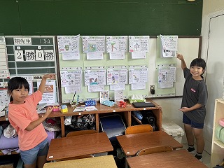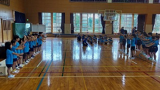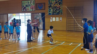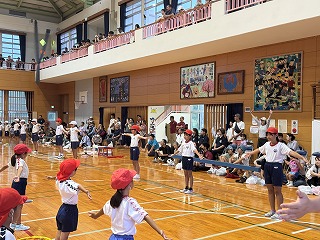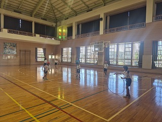 今日も朝からめちゃくちゃ暑いですが、宮小っ子が元気いっぱい!朝の時間に『宮スポ』で盛り上がりました。前回の宮スポよりも上達している大縄飛びにびっくり!!!高速で跳ぶ学年に「はいっ!はいっ!」とみんなで声をかけあっている学年とそれぞれですが、どの学年も楽しい時間を過ごすことができました。1年生の縄跳びも前回より上手になって、連続で跳ぶ回数が増えていました(^_^)やっぱり宮小っ子はすごいなぁ(*^_^*)