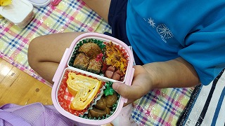 今日は遠足ですが、それにあわせてお弁当の日を設定しました。『つめつめコース』『主食コース』『おかずコース』『一人前コース』と児童や保護者の弁当づくりへの関わり方に合わせたコースを各自で選択してお弁当を用意してきた子ども達。どの子のお弁当もおいしそうな出来で、みんな笑顔で食べていました(^o^)