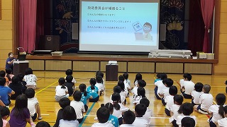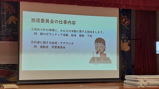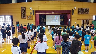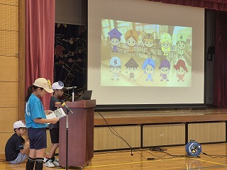 朝集会で『宮小っ子会議』を行いました。これまでは児童会総会という名称で活動してきましたが、宮小っ子会議に名称変更し、より学校行事や宮小っ子全児童による学校運営に親しみがでると予想されます。今日は、各委員会のメンバーや仕事内容の紹介でした。どの委員会もわかりやすく紹介できました。また、聞く側の子ども達も真剣に話を聞いていました。そういう姿を見ると、やっぱり宮小っ子はステキだなと再確認できます(^o^)集会後は、SLS(スクールライフサポーター)の長嶺さんの紹介も行いました。