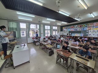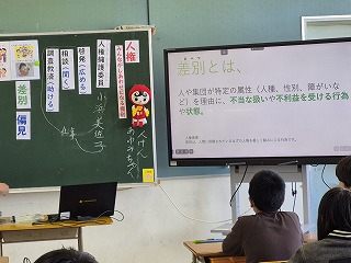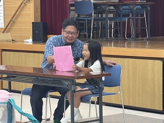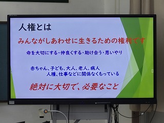 石垣市の人権擁護委員の小浜さんと翁長さんをお招きし、1・3・5年生が「まごころ(人権)教室」で人権について学ぶことができました。人(みんな)が幸せに生きる権利のことを人権ということや、人種や国や性別、宗教などで差別があってはならないことなど。また、困ったときは相談できる環境が皆さんにはあること。等を教えてもらいました。みんなが毎日楽しく生活できたり、仲間と笑い合ったり助け合ったりしながら互いに成長していけるステキな日々であることを心より願っています(*^_^*)