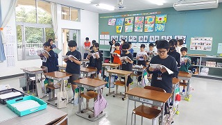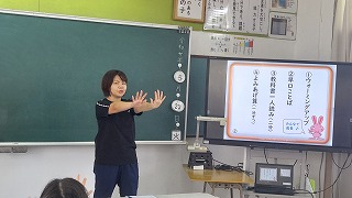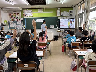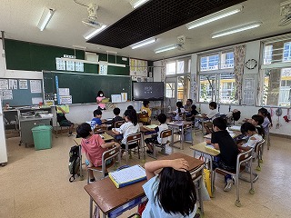 週に1~2回、本校には英語専科や音楽専科の先生が来校し、子ども達と授業を行います。今日は音楽専科の上里先生の来校日です。音楽室では4年生の楽しそうな歌声が聞こえてきました。音楽に合わせて発声をしたり早口言葉を歌ったりしていました。子ども達が楽しみながら笑顔で授業できるって最高ですよね(*^_^*)