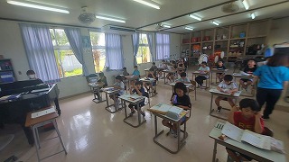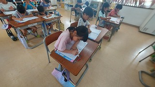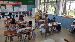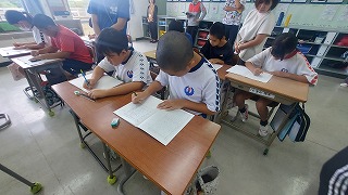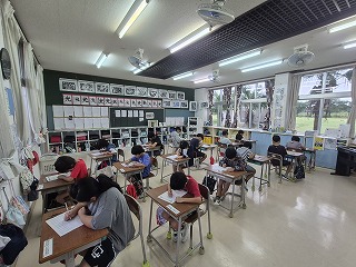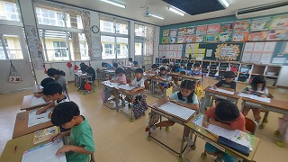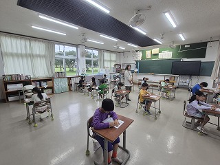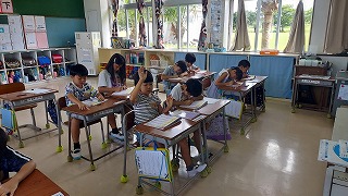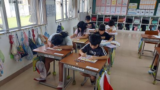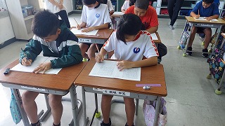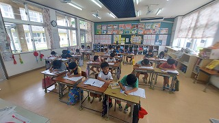 今日の朝の時間は「宮良っ子チャレンジテスト」を行いました。11月は自学自習強化月間でしたが、子ども達が2学期の学習をどれくらい習熟しているのかを確かめるためのミニテストです。基礎基本の定着を目指し自学自習に頑張ってきた子ども達(*^_^*)テスト結果はもちろん気になるところですが、子ども達が日々頑張ってくれることを嬉しく思います。テストがあるから頑張る!のではなく、日頃から自分のレベルアップのために頑張ってほしいと思います(*^_^*)