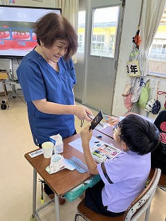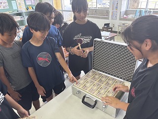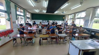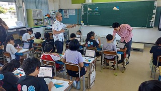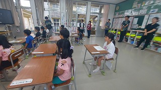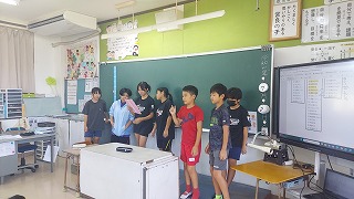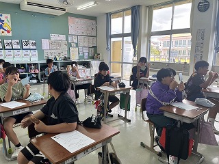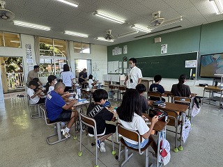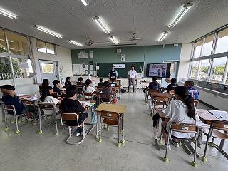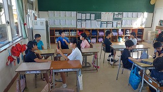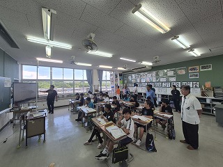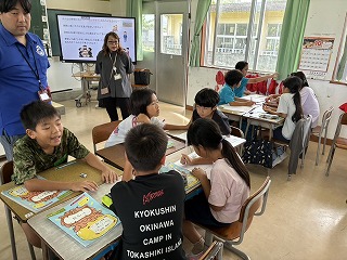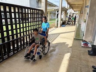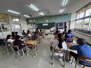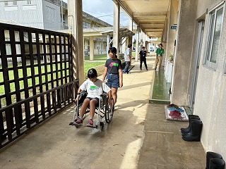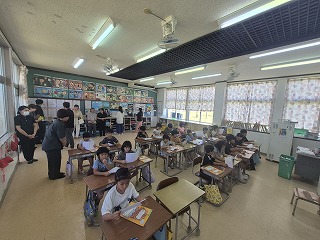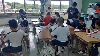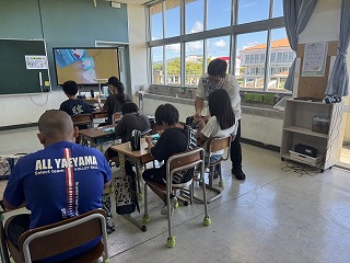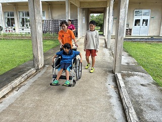 石垣市社会福祉協議会の皆様が来校し、4年生が「福祉体験学習」を実施しました。まずは教室で座学です。福祉についての説明や福祉の重要性の説明を受けたり、本校のユニバーサルデザインとその改善について話を聞いたりグループワークで色々なことを考えることができました。座学の後は廊下に出ての体験学習です。『車椅子体験』『アイマスク体験』『介助体験』では、見えない怖さ、段差の怖さ、支え無しで1人で生活する怖さを体験しました。それに併せて、介助する体験も行いました。声かけの大切さや健常者では普通のこと(手洗い場の前のすのこや段差)がサポートが必要な方にとっては大きな問題であること、介助する側のやり方など、日頃学べない多くのことを学ぶことができた4年生でした!!!