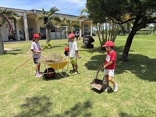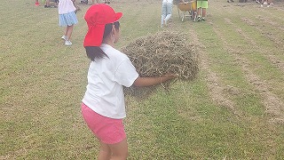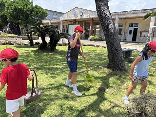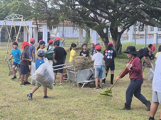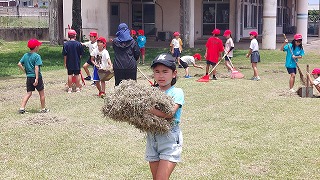 あれっ、この前もクリーンデーで草を集めたのに(T_T)と思いたくなりますが、クリーンデーは毎週あります!縦割りのグループに分かれて各グループでメンバー確認と挨拶をして作業開始です。今日も先週に引き続き運動場の草集めをしました。刈ってもっても刈っても刈っても伸びてくる草に対抗する宮小っ子のやる気いっぱいの姿はとてもかっこいいです(^o^)これからも宮小っ子と職員とヤギさんで頑張ります!(^o^)