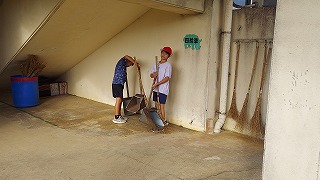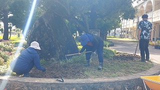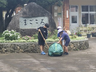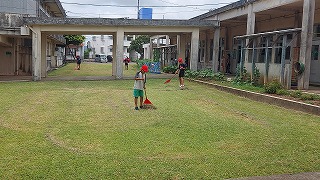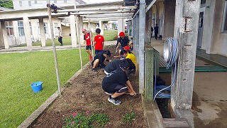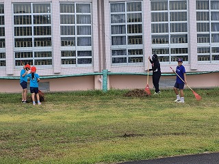 毎週実施のクリーンデー!今日は中庭や学校周りの美化作業を中心に実施しました。