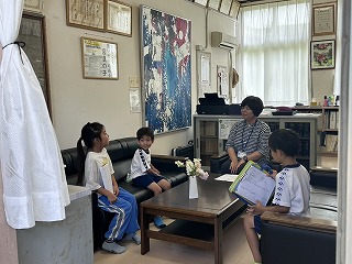 今日は『働く人インタビュー』ということで、2年生が職員にインタビュー学習を行いました。事前に聞きたい内容を決めインタビューに臨んだ子ども達。インタビューの対応もとてもすばらしく、受ける側も答えたくなるインタビューとなりました(^_^)中には面白い質問もあり、笑いもあるインタビューの時間でした。