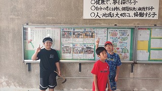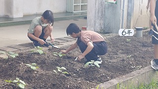 最近の暑さは本当に大変ですが毎日頑張る子ども達です。そんな中、朝から畑作業を頑張る6年生です。植えているのはナスかな!?きれいに耕して植えた後も、雑草をとりながら管理をしています。早く大きくなって食べるのが楽しみです(^_^)