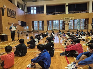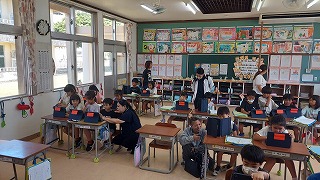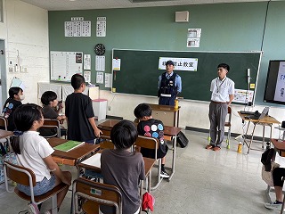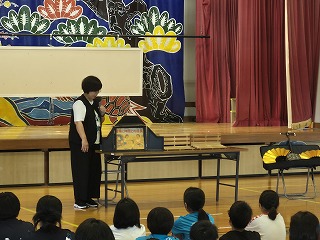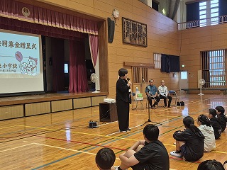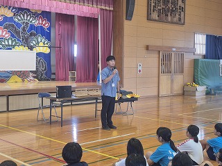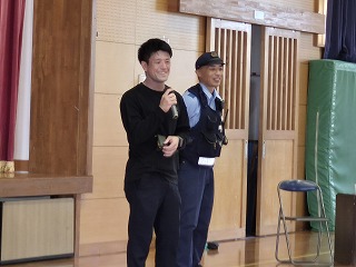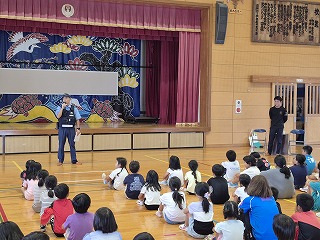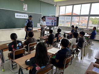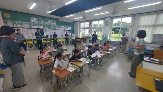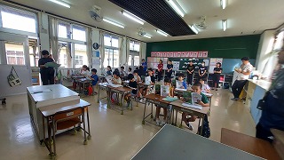 本日、防犯協会の皆様が来校し、新1年生に「いかのおすし」の下敷きを贈呈してくれました。どうもありがとうございました(^_^)