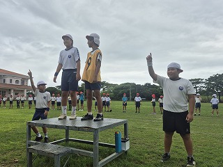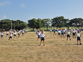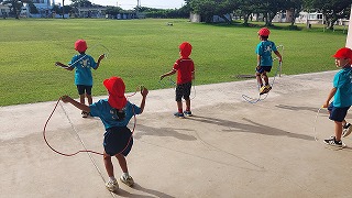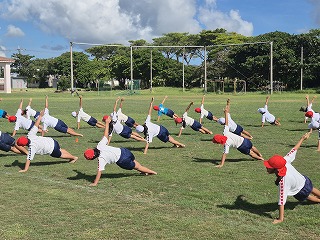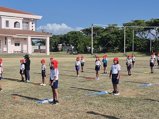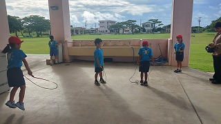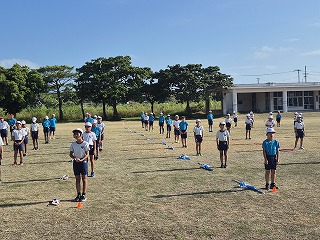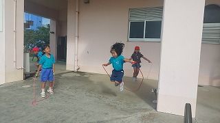 宮良小学校では毎月1回(朝の15分間)『宮スポ』という名前で、長縄跳び(2~6年)となわとび(1年)を実施しています。学期末には、学年対抗の大会も実施します。そんな宮スポが今日から始まりました。長縄に向かう姿勢と目線がかっこいい宮小っ子でした。1年生も縄跳びを楽しんでいました。得意な子もそうじゃない子もいると思いますが、みんなで挑戦したり自分なりに挑戦したりしながら進んでいけるといいですね(^_^)