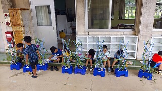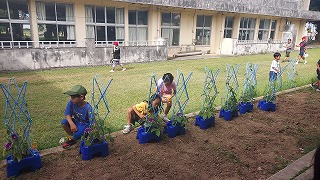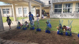今日は2年生が一人一鉢運動を行いました。これで、すべての学年が自分の鉢(プランター)に苗を植えることができました。植えて終わりではなく、これからが大変です。雑草の手入れや水かけなど、しっかりと管理を行い満開の花を咲かせて宮良小学校を今よりも明るいステキな学校にしてほしいと思います(^o^)