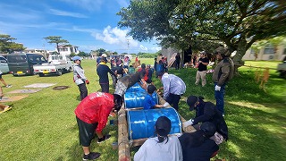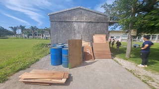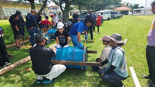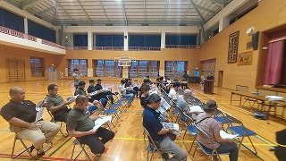 石垣市民を対象にした防災訓練が開催されました。地域の皆様が運動場に避難を行い、実際に災害が起際の際の避難についてシュミレーション体験をしました。避難後は、防災倉庫の中身を全員で確認して、どのような備蓄品が保管されているのかも確認することができました。災害が無いことを常に願っていますが、もしもに備えることも大事なことだと思います。参加された皆さん、お疲れ様でした。また、公民館役員・婦人会の皆様をはじめ、訓練にご協力いただいた皆様にも感謝を申し上げます。