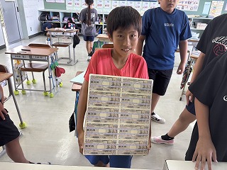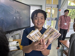 合同体育を参観しに来てくれた保護者向けに、自分たちで栽培したネギを販売した3年生。「100円だよ~!」「ペイペイは使えません。現金のみで~す」「もう少しで売り切れですよー」と元気よく販売したネギは、あっという間に売り切れでした(*^_^*)