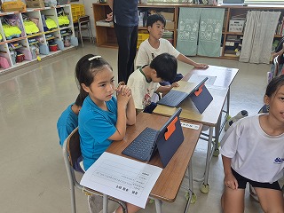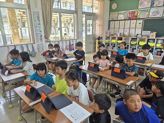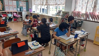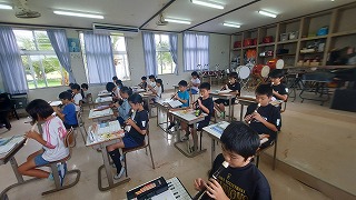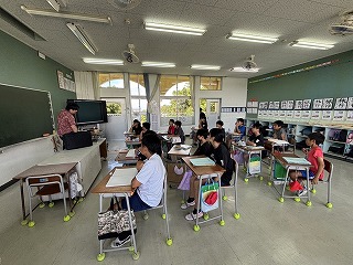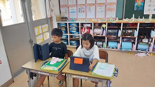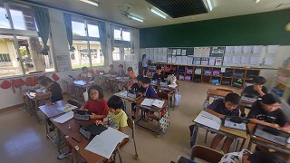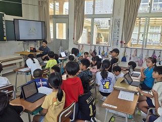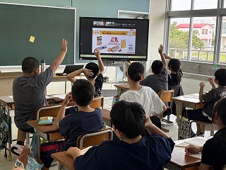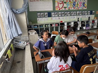 今日は、徳島県の松島小学校の皆さんと2回目のオンライン交流学習を行いました。今日は、お互いの学校の修学旅行についてパワポにまとめて発表交流をしました。宮良小学校は沖縄本島へ!松島小学校は京都へ!互いの行き先は違いますが、修学旅行の様子を紹介し合うことができた子ども達です(*^_^*)