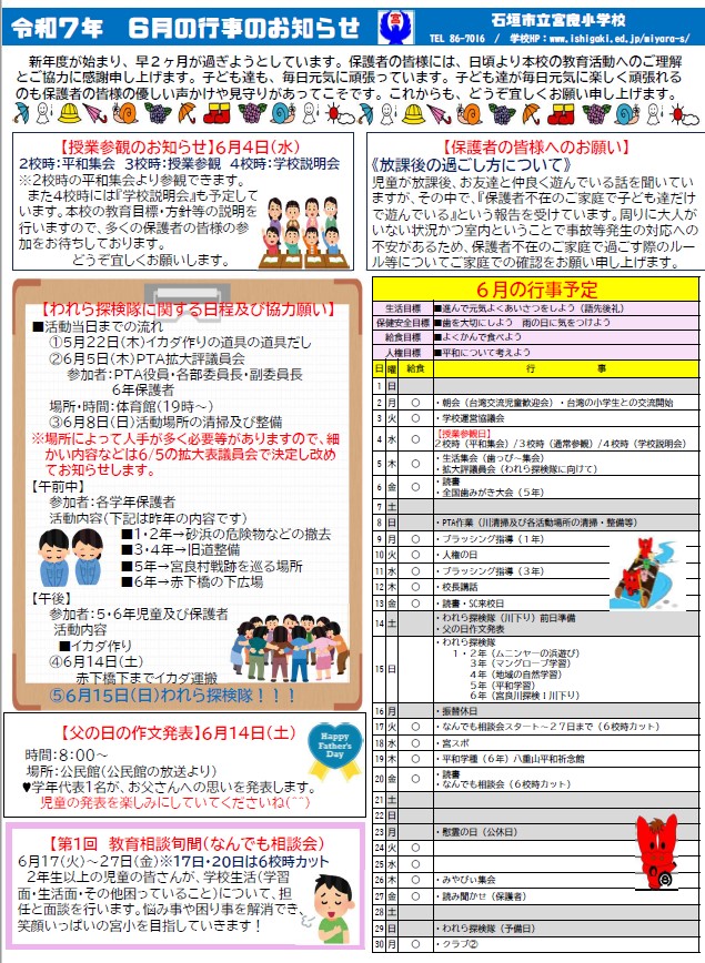 メニューの「本校の教育」に、今年度の宮良小学校グランドデザインをアップしました。