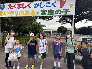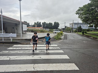 昨日の登校時は、大雨で大変な登校でした(T_T)大雨にもかかわらず、子ども達の登校の見守りをしていただいた老人クラブ寿会の皆様、本当にありがとうございます。今日は曇り空になり、いつも通りの子ども達の笑顔が確認できる登校となりました(*^_^*)台風の影響で落ち着かない天気ですが、元気に頑張っている宮小っ子です。明日はまた天気が崩れそうな予報です。保護者の皆様、お子様の雨具の準備をお願いします。