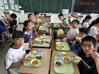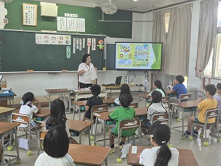 小林さんを講師にお招きし、『SDGs』について学んだ3年生。SDGsとは、誰一人取り残さない未来をつくるための目標ということを学びました。その中でも今回は、フードロスについてお話しを聞き、自分たちにできるフードロスの取組について考えました。子ども達からは、「必要な分だけ買う」や「残さないように苦手なものから食べる」などの考えができました。今日の給食では、残さないように声を掛け合ったり、食べれる量の調整を行ったりしていた子ども達です(^o^)