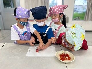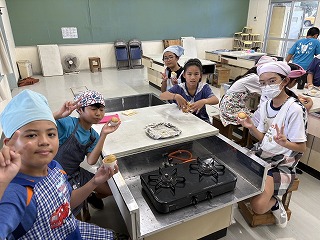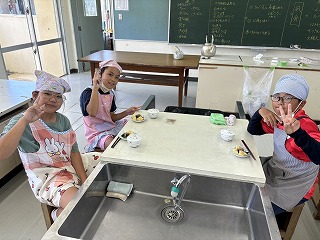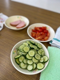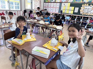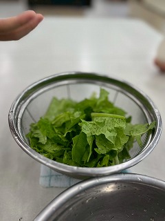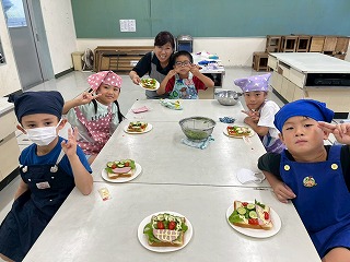 学級園で育てたレタスを使ってサンドウィッチパーティーをした1年生!レタスだけでは寂しいので、キュウリやトマトにハムを加えて作ったサンドウィッチはとってもとってもおいしかったです(*^_^*)野菜が苦手な子も笑顔で食べていました(^o^)おいしかったです!ごちそうさまでした(^_^)