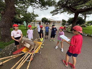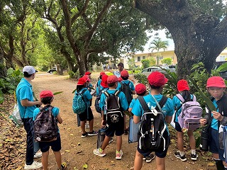 2グループに分かれて『春の遠足』に行ってきました。今年の遠足は、地元宮良の探検です!そのため、2グループで宮良集落を見学してきました。普段生活している宮良集落ですが、通りはするものの行ったことがない場所もありました。高学年と低学年がペアで歩く姿はかわいかったです(^o^)探検後は、学校に戻りみんなで弁当を食べました!