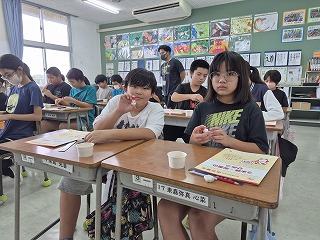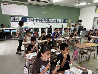 5年生が、味の素さんによる特設授業に参加しました。お湯に味噌をといただけのものを試飲した後に味の素を入れて再度試飲してみると・・・・・あら不思議。うまみが加わったおいしい味噌汁に大変身!!!授業を通して、おいしく食べることの意義や意味、成長期の子ども達にとっての食事の重要性などを学んだ5年生です(*^_^*)味の素さん、特設授業をどうもありがとうございました。