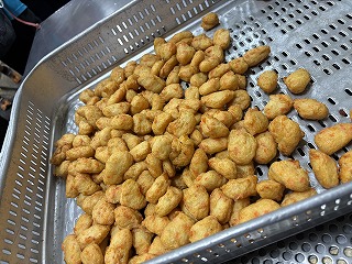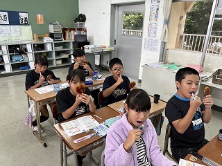 今日は3年生が、かまぼこ工場見学に行ってきました。『砂川かまぼこ』さんで、かまぼこ揚げ体験を通してかまぼこができるまでの工程を実際に学ぶことができました。実際にやってみると熱い油が怖くて、恐る恐るすり身を投入する子もいましたが何度も挑戦しながら慣れてきた子ども達です。すり身が魚をすりつぶした状態ということに驚いたり、砂川さんが高速ですり身を油鍋に投入する様子に驚いたり、朝2時から作業をしておいしいかまぼこを作っていることに驚いたりと多くの発見がありました。見学・体験の後は、砂川さんからのかまぼこ作りの説明を聞きました。教科書でも学習していましたが、実際に砂川さんの話を聞いて、より学習が深めることもできました。砂川かまぼこさん、今日は宮小3年生を快く受け入れていただいて、本当にありがとうございました。