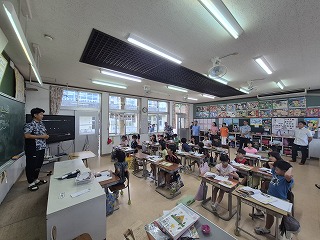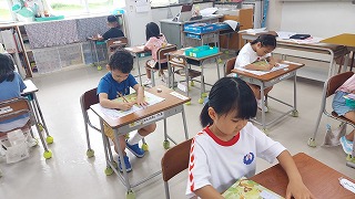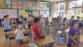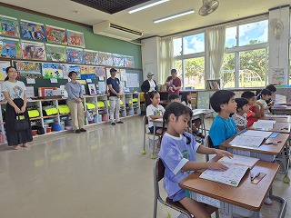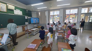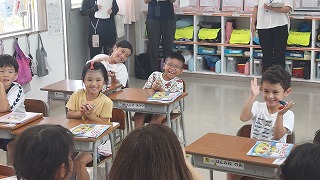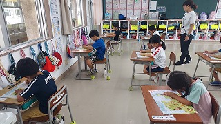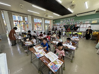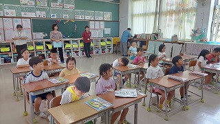 ついこの間まで幼稚園や保育園に通っていた1年生。時間で区切られた学習や色々な学習内容に疲れもでているかもしれません。でも、毎日一生懸命頑張っている1年生の皆さんです(^o^)今日は、幼稚園や保育園の先生方が参観に見えて、1年生の頑張りと成長を喜んでいました(^_^)