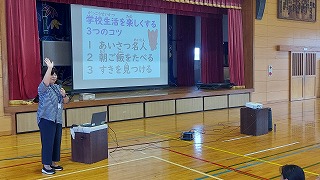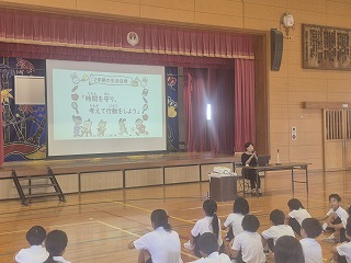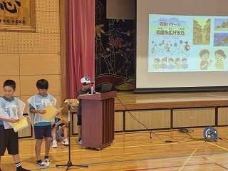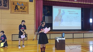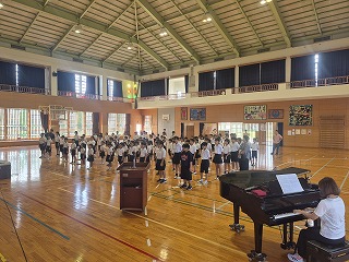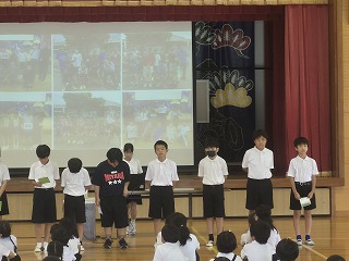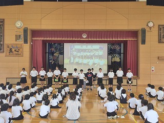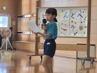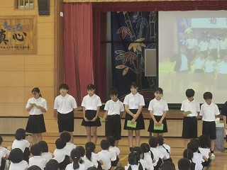 式後は、生活集会です。生活目標の発表や保健目標の発表を行い、宮小っ子の毎日の過ごし方について確認することができました。