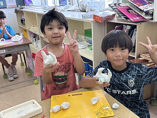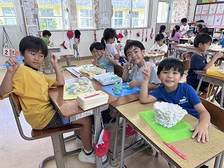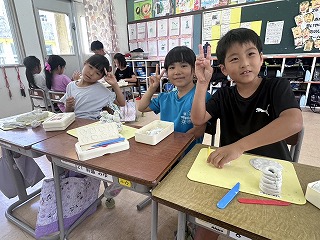 今日は「工業生産に携わる人々の思いや、企業の工夫をバンダイ職員の方から話を聞くこと」で色々な学びを広げ、自分の考えや思いを深めた5年生です。また、ガンプラの制作を通して、企業の努力や工夫を見つけることもできました(*^_^*)
