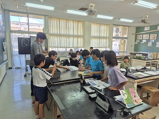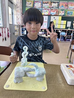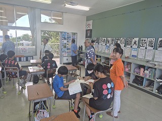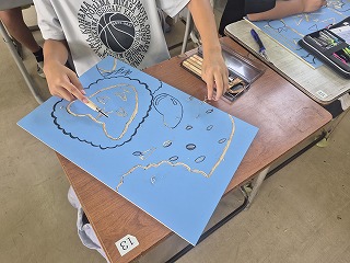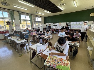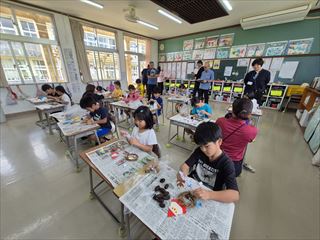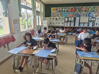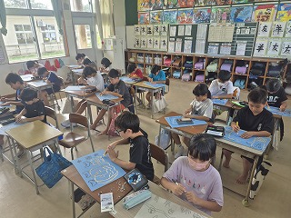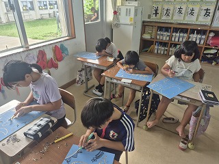 木版画に取り組んでいる4年生。彫刻刀の扱いに戸惑いながらも一生懸命彫っていました(*^_^*)線を彫って全体像を確認して・・・・・ここは彫るべきか?残すべきか?自分なりに考えたり想像したりしながら頑張っていた4年生でした(*^_^*)どんな作品に仕上がるのか楽しみですね。