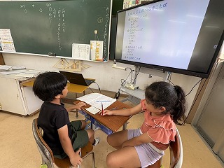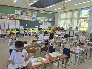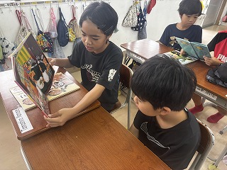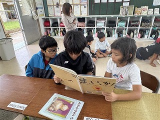今日の読書の時間は『ペア読書』でした。1・4年ペア、2・5年ペア、3・6年ペアになり、お兄ちゃん・お姉ちゃんが読み聞かせをしてくれました(*^_^*)色々な読書の形がありますが、ペア読書もステキな読書の形ですね(^o^)みんな大満足の朝のひとときでした。