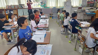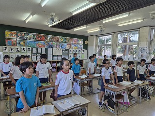今日の朝のウオーミングアップ参観は4年生です。朝の会後に、先週の出来事をペアで紹介しました。その後は教科書を音読したり今日の流れの確認を行いました。週明けでしたが元気よく音読していた4年生の子ども達でした(^_^)