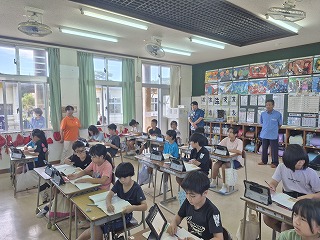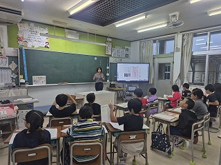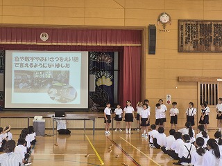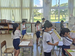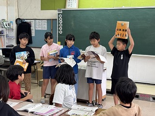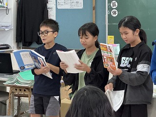 自分の好きな本について、その内容や面白さ、良さを伝えるブックトーク。4年生が、自分のまとめた内容を発表し、自他のおすすめの本の良さを確認することができました(^o^)