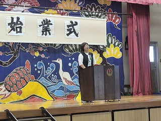 本日、令和7年度の赴任式・始業式が行われました。新しく4人の先生方を迎えた宮良小学校です。赴任式後は、転入生の紹介(5名)を行い、始業式を行いました。始業式では担任紹介や児童代表の決意の言葉がありました。校長先生からは、★あいさつのこと★朝ご飯のこと★たくさん好きをつくってほしいことのお話しがあり、「なりたい自分に向かって成長してほしい!(^_^)」とエールを送っていました。