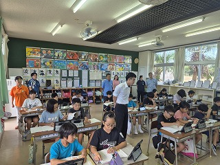 今日は、八重山教育事務所の支援訪問があり、事務所の主事の皆様と石垣市教育委員会の主事が来校し、授業参観や部会に分かれての話し合いがありました。参観した皆様から、「子ども達の落ち着いた学習の様子と共同する姿が素晴らしい!」と、お褒めの言葉をいただきました(*^_^*)さすが宮小っ子!参観後の話し合いでは、3つの部会に分かれて学校運営や学力向上推進・自立した児童の育成について確認を行いました。